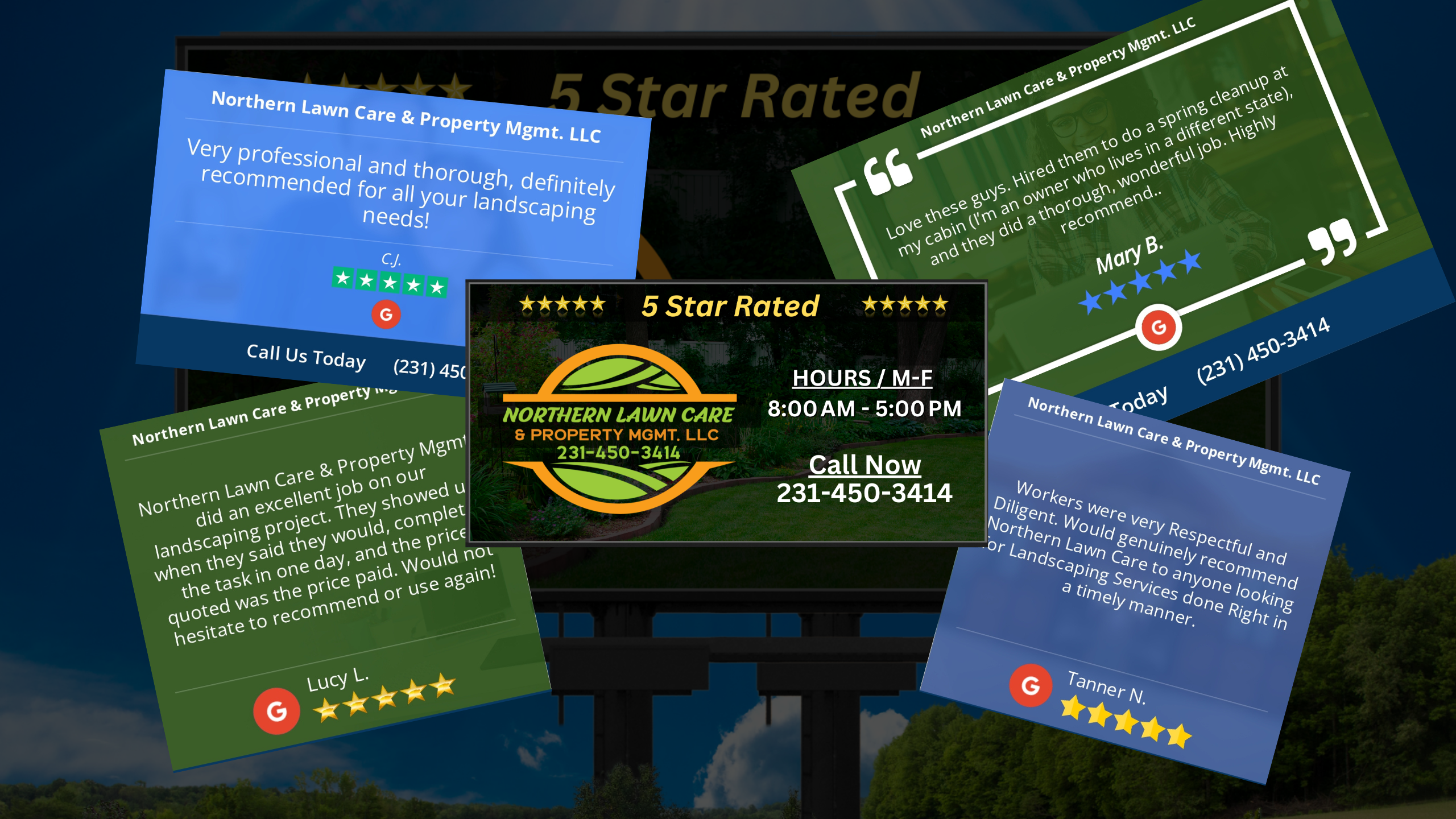 Ready for the Smart Choice? Five-Star Lawn Care. Affordable, Reliable, & Locally Trusted. Call (231) 450-3414 Book Your Service Today.